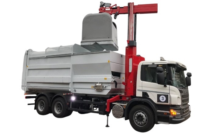 - Permite vaciar y recolocar contenedores estacionarios hechos a medida, optimizando los ciclos de recolección.